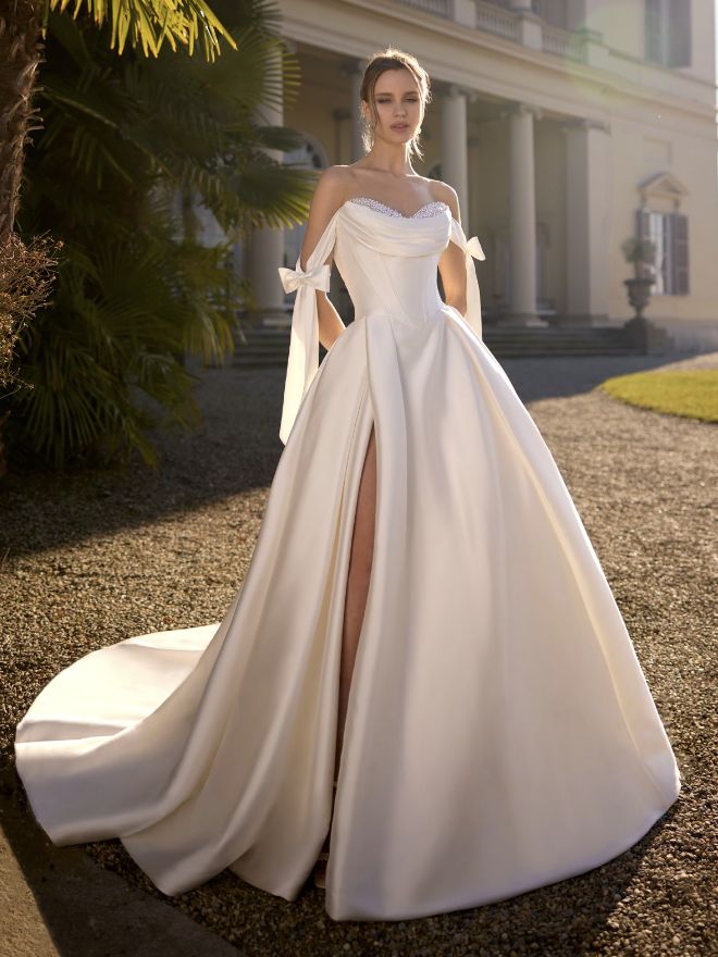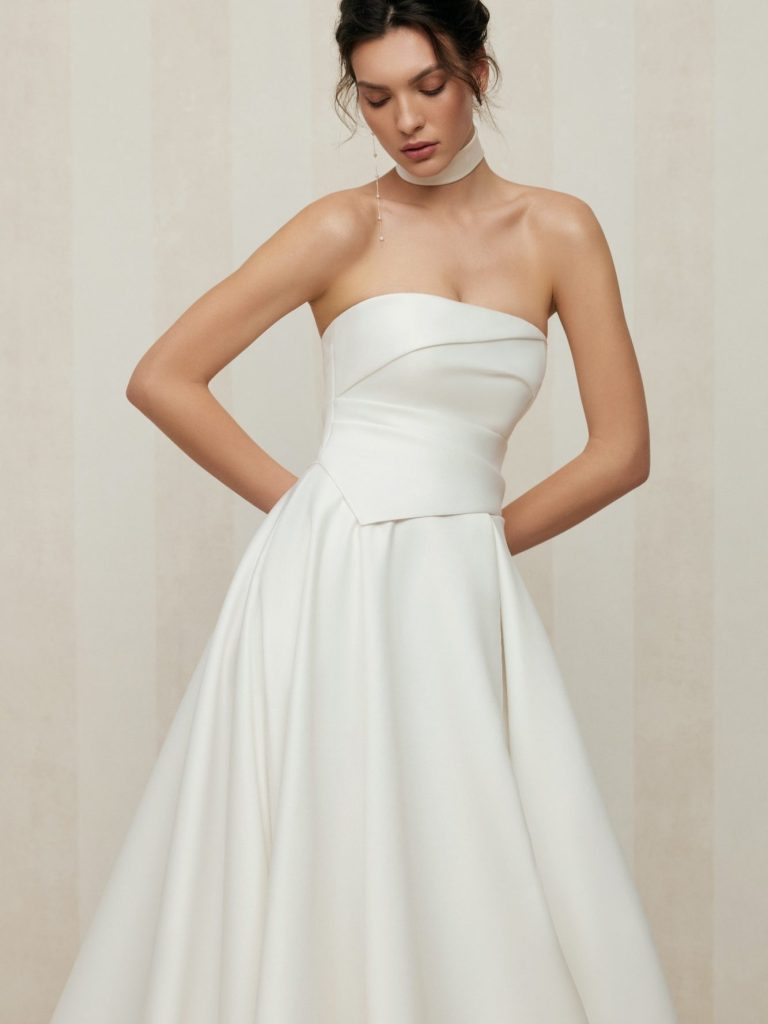 Von der eleganten A-Linie über die figurbetontes Fit and Flare bis hin zum voluminösem Prinzessinnenkleid – jeder Schnitt bringt seine ganz eigene Wirkung mit sich. Auch Details wie Spitze, Tüll, Satin oder schlichte, klare Linien beeinflussen den Gesamtlook.